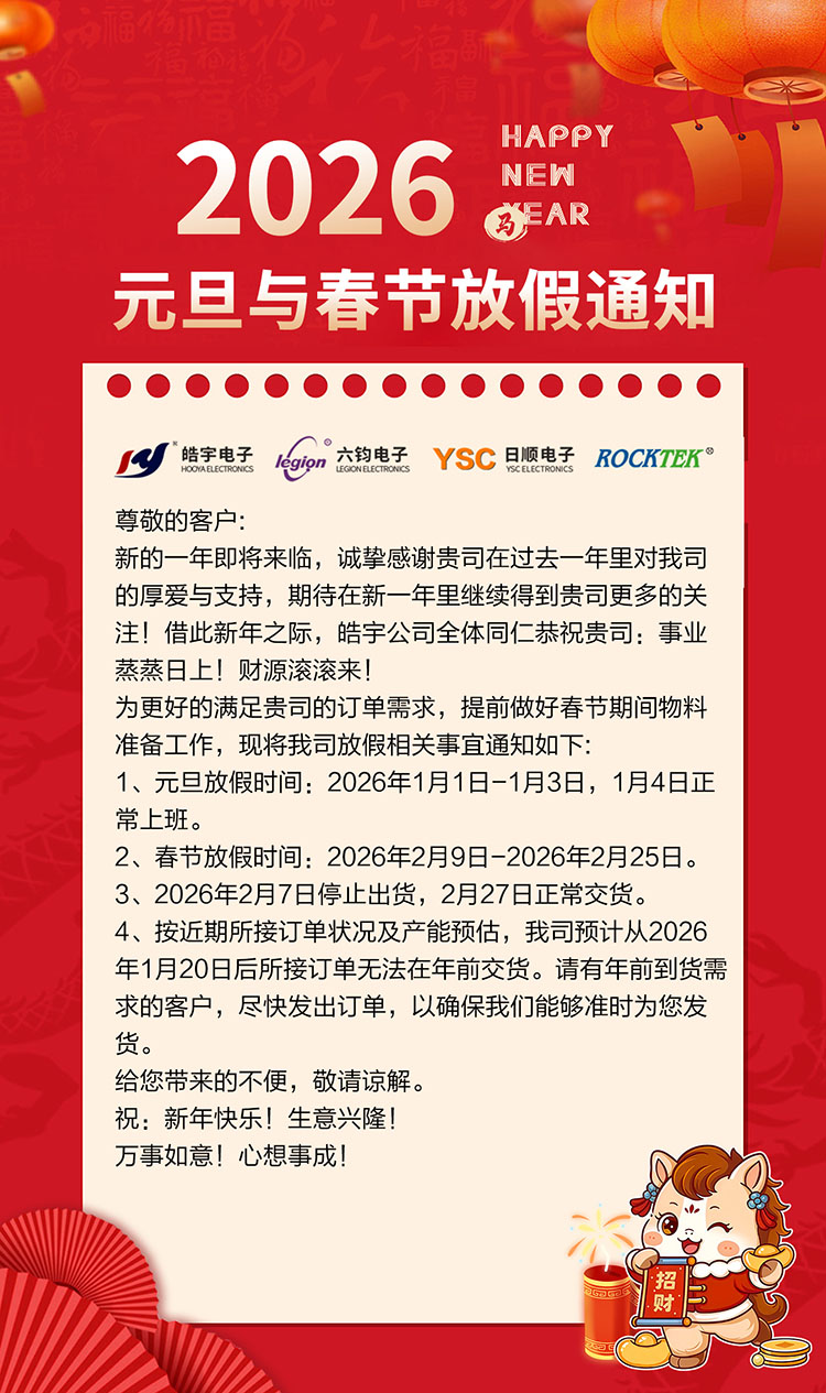 4、按近期所接订单状况及产能预估,我司预计从2026年1月20日后所接订单无法在年前交货。请有年前到货需求的客户,尽快发出订单,以确保我们能够准时为您发货。