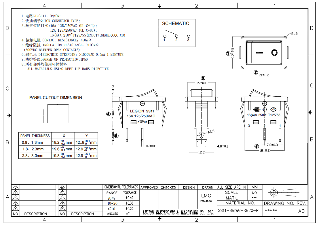 跷板开关SS11-BBIWG-RB20-R